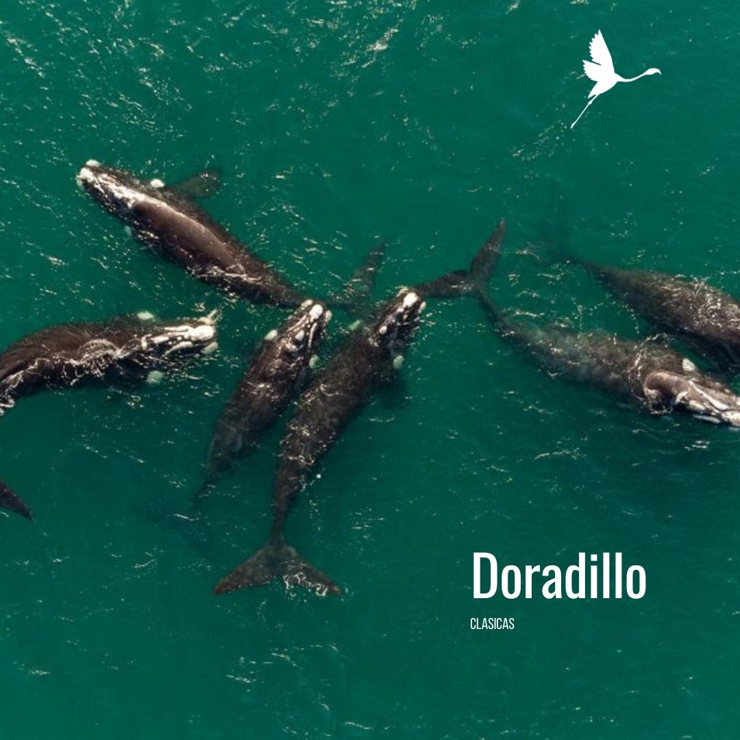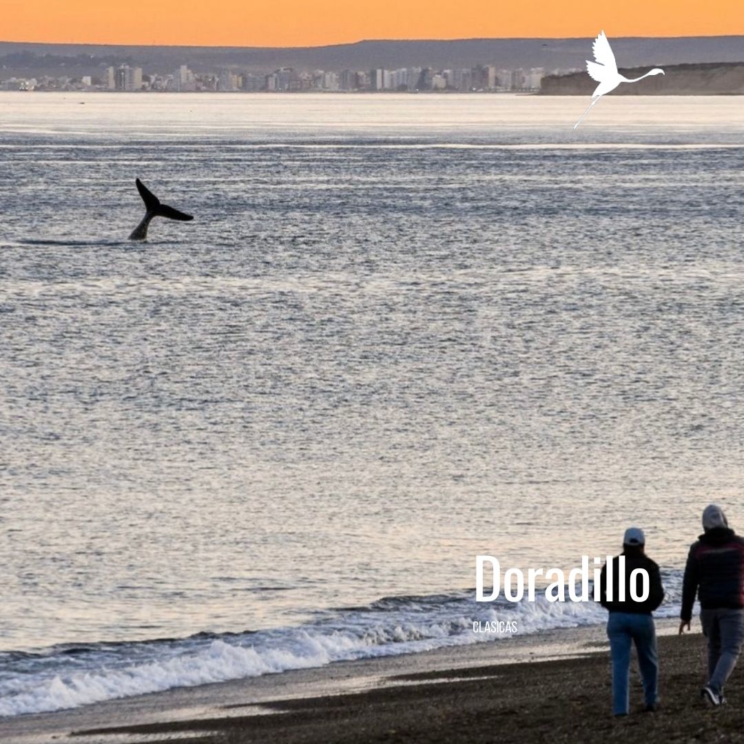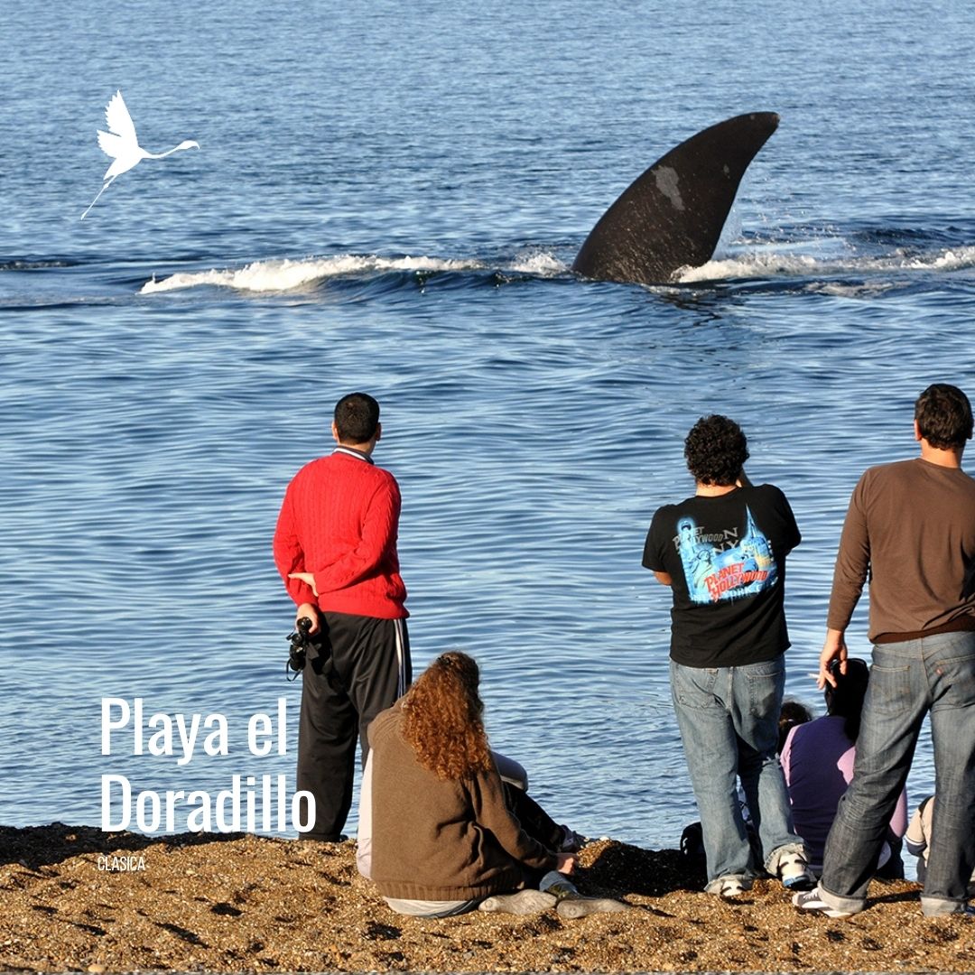 Viví uno de los espectáculos naturales más íntimos de la Patagonia: observá ballenas francas australes a pocos metros de la orilla, mientras crian, amamantan y descansan con sus crías en Playa El Doradillo, un área protegida única.